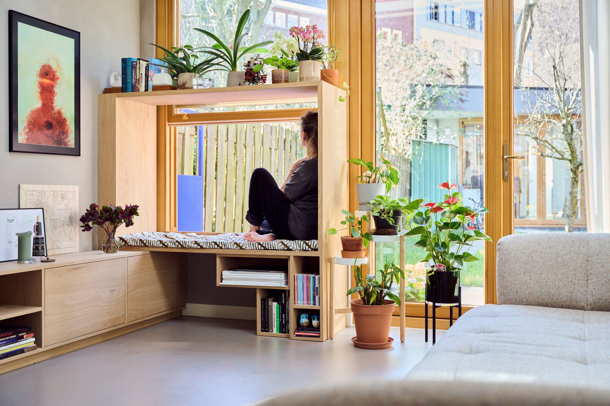 W ogrodzie, poza główną częścią mieszkalną, zaprojektowano również wielofunkcyjny pawilon, zbudowany wokół istniejącego drzewa. Przestrzeń ta służy jako miejsce pracy, relaksu i jogi. Zielone dachy pawilonu oraz dobudówki domu przeznaczono na uprawę warzyw, tworząc prawdziwą ekologiczną oazę w centrum miasta.