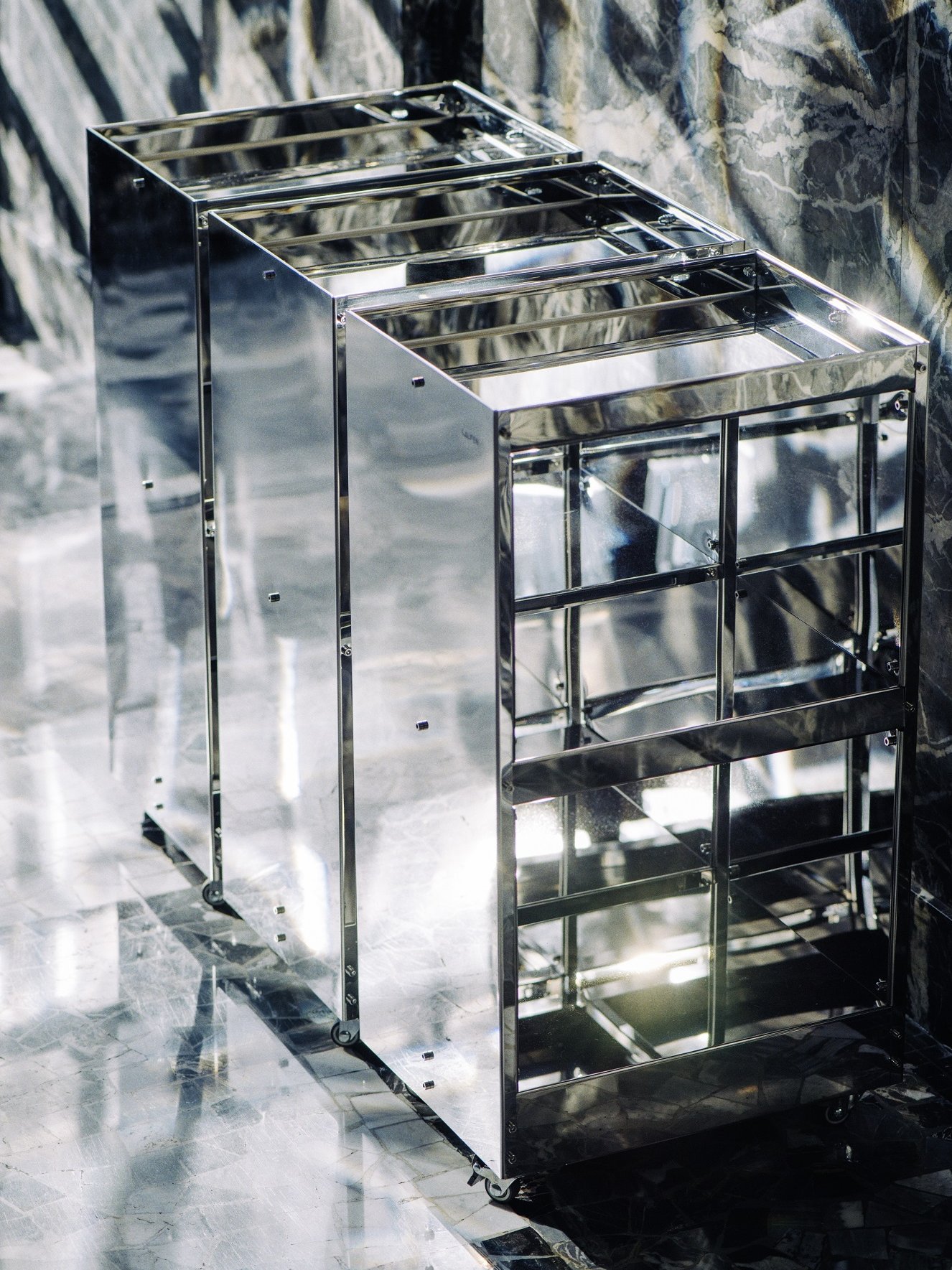 Kolekcja Kapsuła stworzona przez LAUFENXNM3 zawiera meble i akcesoria z nierdzewnej stali. Geometryczne linie i wysoka jakość sprawia, że pasują idealnie do każdej przestrzeni. Dlatego Laufen wybrał najbardziej symboliczne mediolańskie budynki do zaprezentowania kolekcji, bo tam pasują idealnie łącząc się z różnymi odcieniami marmuru, ceramiką wysokiej jakości i efektem odbicia obrazu na powierzchni stali.