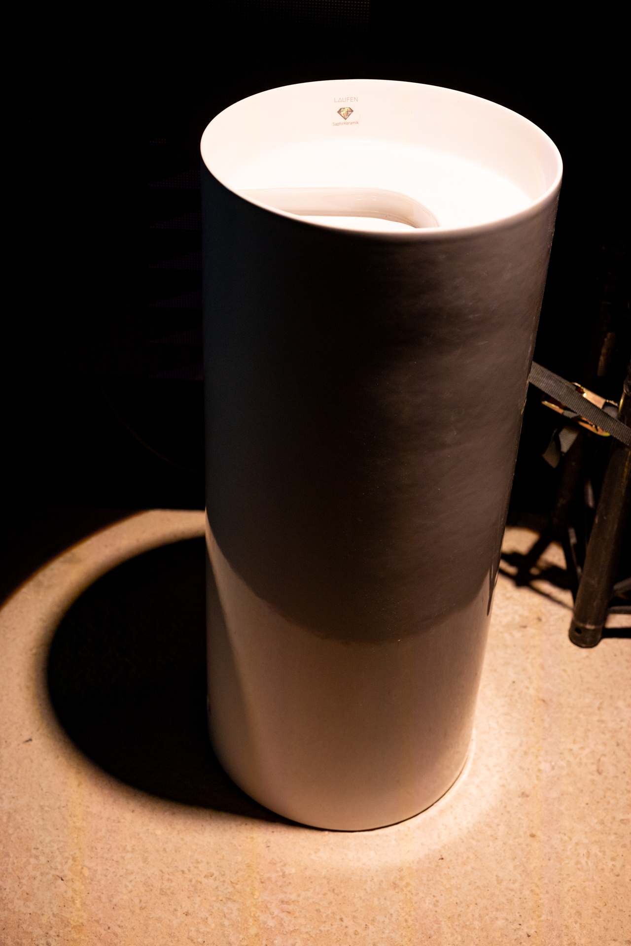 W centrum instalacji LAUFEN znalazła się umywalka VOLTA – najnowszy projekt autorstwa uznanego szwajcarsko-amerykańskiego projektanta Yvesa Béhara . VOLTA to obiekt, który łączy rzeźbiarską formę z funkcjonalnością, redefiniując pojęcie ceramiki łazienkowej. Jej organiczna, a zarazem precyzyjna forma stanowi wyraz nowoczesnego podejścia do projektowania, w którym estetyka idzie w parze z odpowiedzialnością środowiskową.